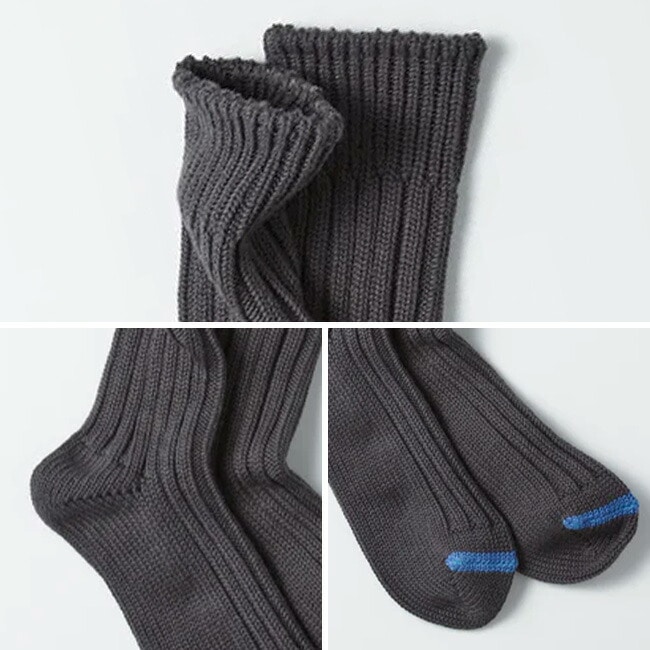 一般的なソックスに比べてしっかりとした肉厚の生地ながら、編み目が大きいため通気性も良いのが特徴です。