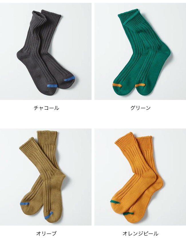 今では扱える職人の少ない希少な旧式のローゲージ編み機でざっくりと編み立てたこのソックスは、80年代や90年代のアウトドアウェアのカラーリングからインスピレーションを得ています。