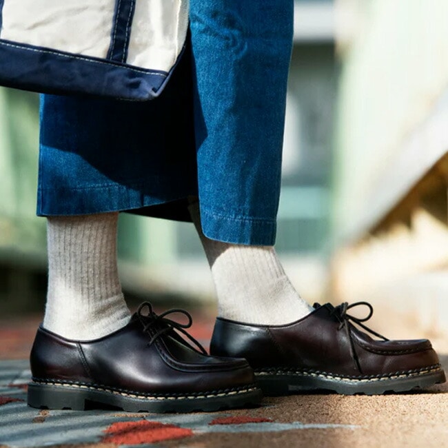 内側は未染色のオーガニックコットンを薄手のパイル状に編み立て、履き口とアーチサポートのゴムをソフトフィット仕様にすることで、締め付け感を最小限に抑え、リラックスした履き心地に仕上げました。