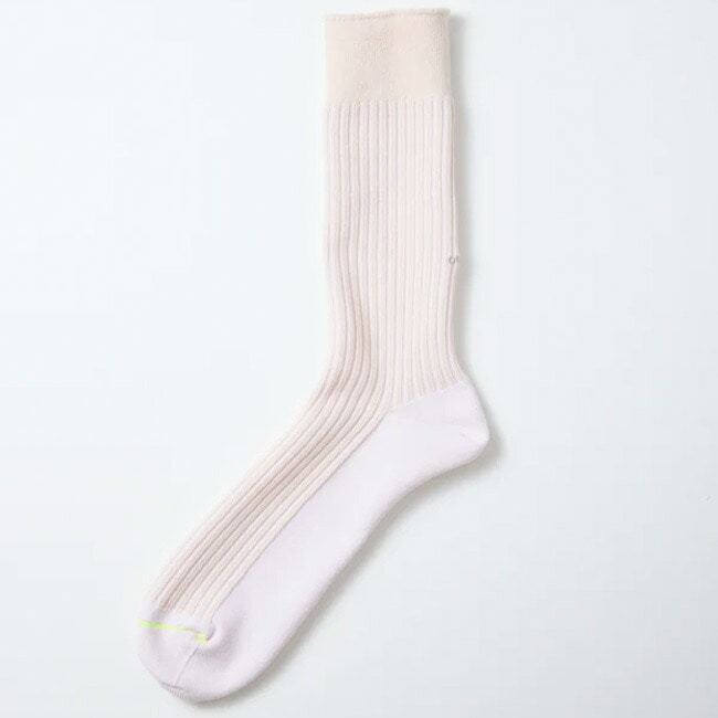 ドレスソックスやビジネスソックスを得意とする工場で編み立て、つま先は編み目同士を丁寧につなぎ合わせる“リンキング” という手法で仕上げることで、縫い代のごろつきがなく、快適な履き心地を実現しました。
