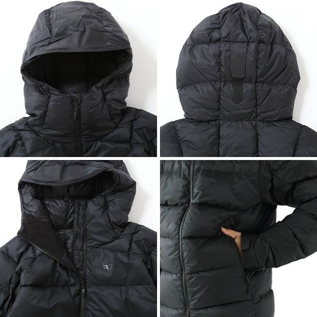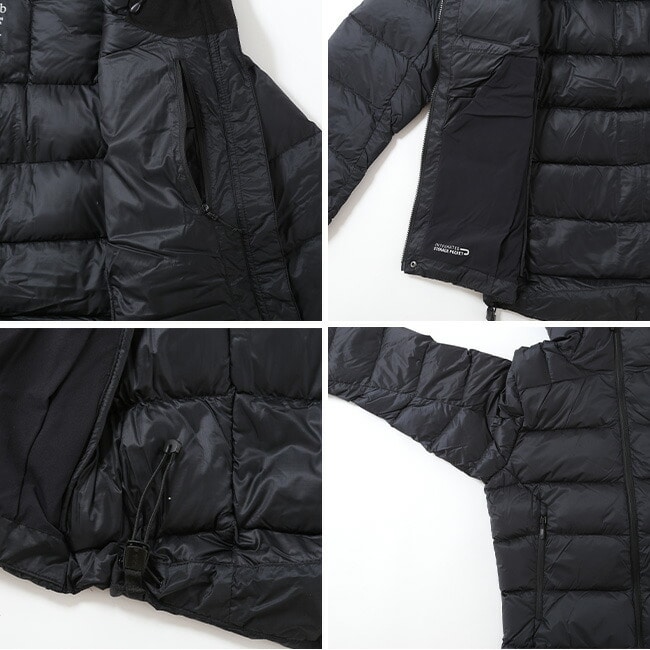 ・フルアジャスタブルのヘルメット対応ダウンフード