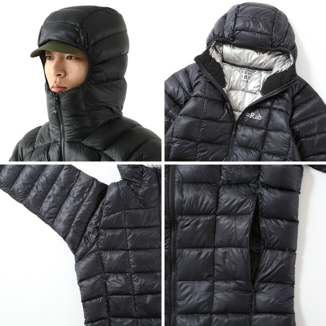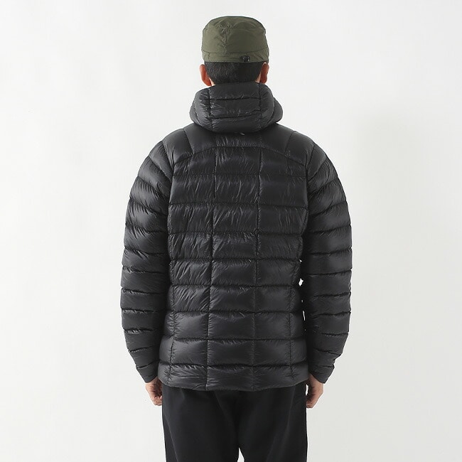 ・ダウン素材を使用したフードは伸縮性のある開口部を備え、峰は硬く保護されています