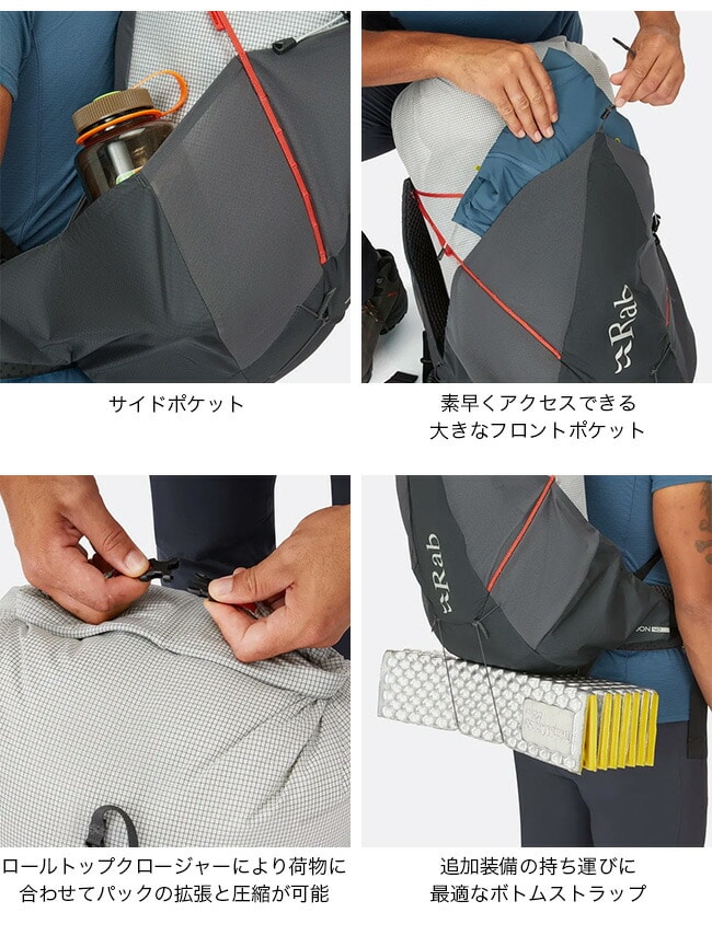 ・ロールトップクロージャーにより、キットの変更に合わせてパックの拡張と圧縮が可能