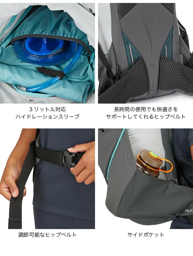 ・ロールトップクロージャーにより、キットの変更に合わせてパックの拡張と圧縮が可能