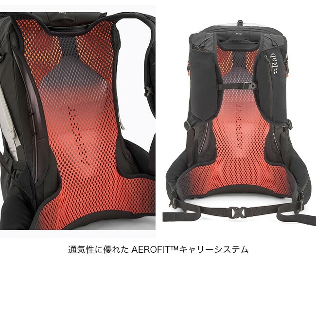 背面には通気性に優れたAEROFIT™キャリーシステムを採用。