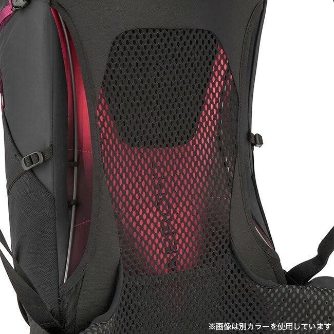 サスペンデッドメッシュ構造により背中との間に空間を確保し、優れたエアフローを実現します。