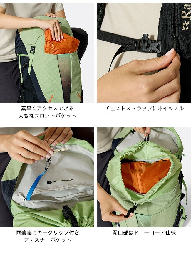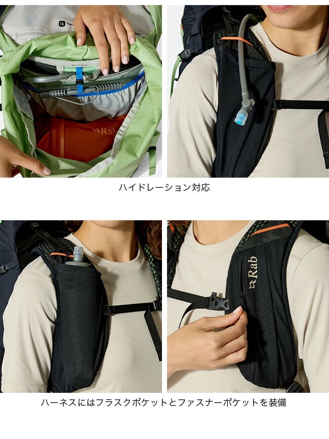 暑い日帰りハイキングや、山小屋をつなぐ縦走旅に最適な軽量バックパック。気温の高い環境下でも快適に行動できるよう設計されています。