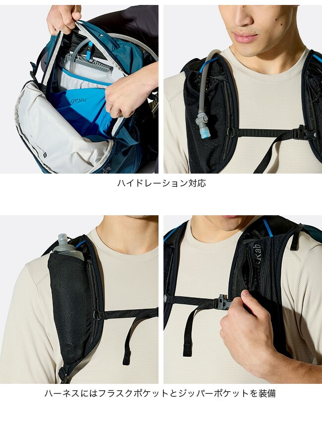 ・ソフトフラスクや必需品を素早く取り出せるチェストストラップ収納