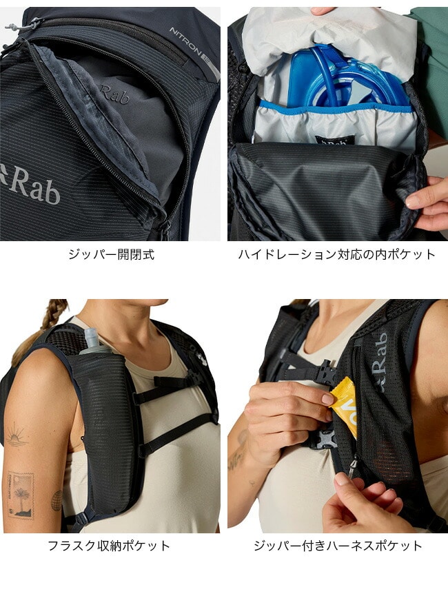 身体にフィットする快適なハーネスと移動中でも使いやすいポケット配置により、あらゆる地形でダイナミックな動きを可能にします。