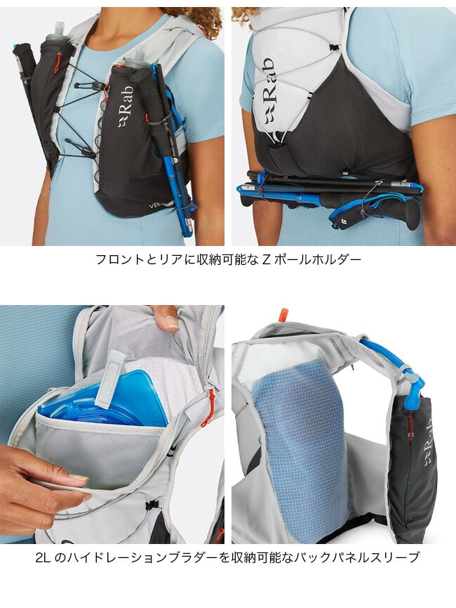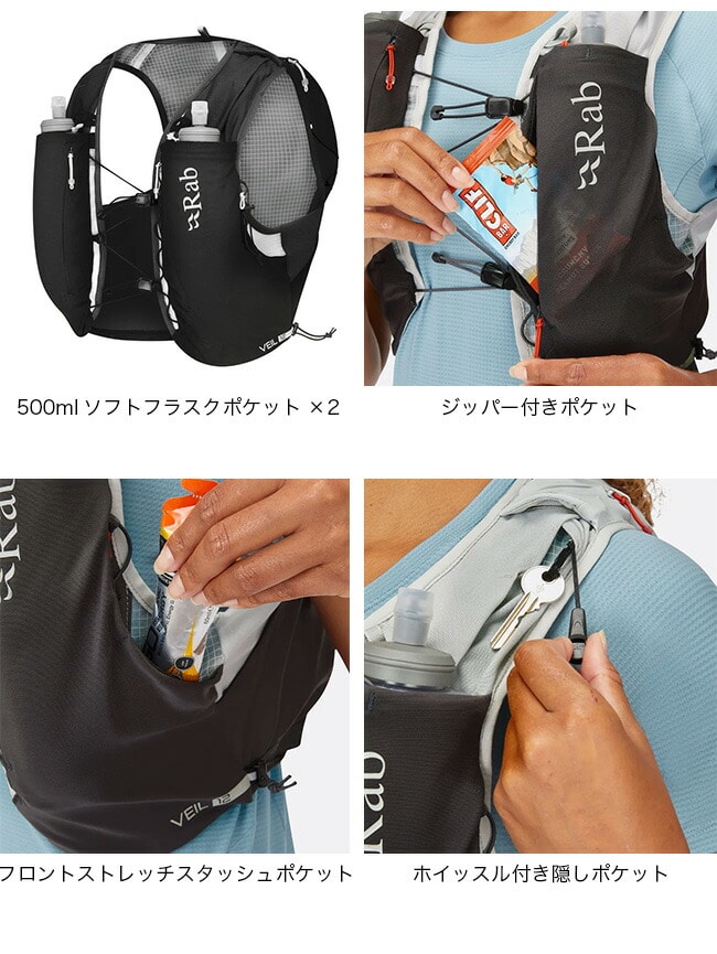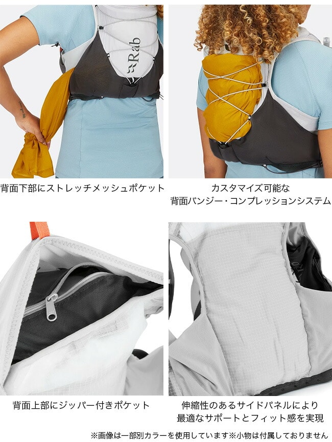 ハイドレーションに対応し、持ち運びにも便利で、大きなジッパー付きバックコンパートメントは長距離ランに必要な追加キットの収納に最適です。長距離ランに必要な追加キットの収納に最適です。