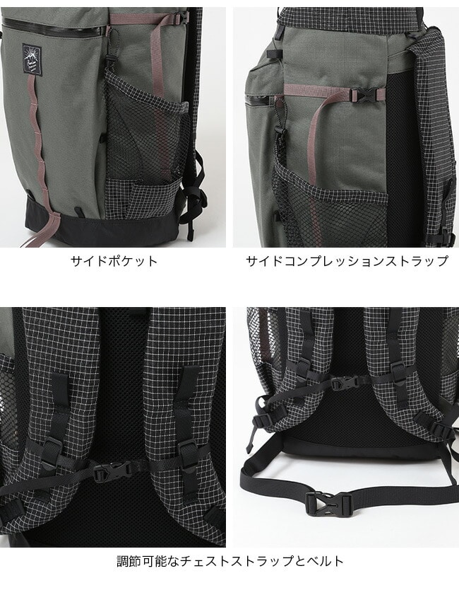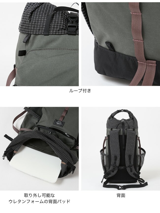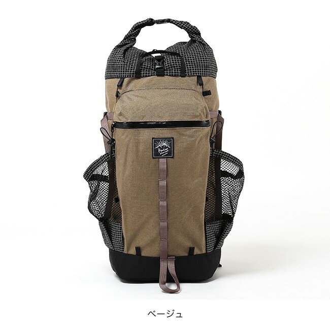 Back to Basicというコンセプトでギミック等は一切なしですが そのぶん徹底的にサイズ感と使い勝手、そして背負い心地に拘りました。メインの素材は強靭ながら軽量の撥水加工済みの1000Dナイロンを使用(ポリエステル15%混紡) ハイク時でのハードなアクティビティに最適化したのはもちろんですが、 それプラスあまりスポーティー過ぎずオールドスクールなデザインのマウンテンギアを目指しました。