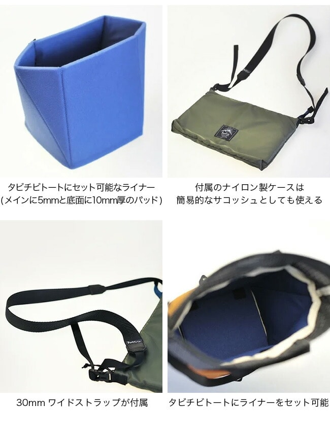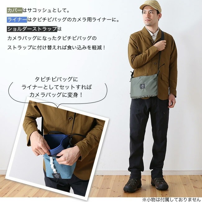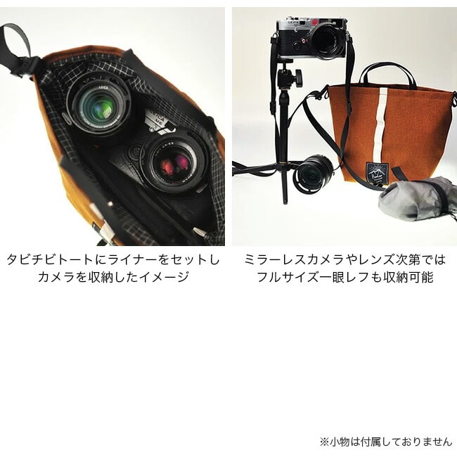 コンパクトな折りたたみ式のライナーを組み立ててタビチビにセットするだけで簡単にカメラバッグとして使用可能。
