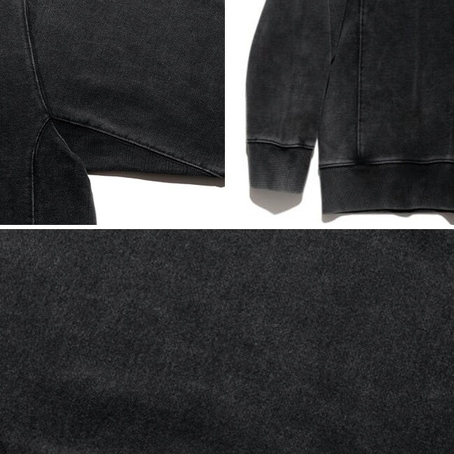 ウォッシュ加工を施し古着のような風合いに仕上げた12.5ozのクルースウェット
