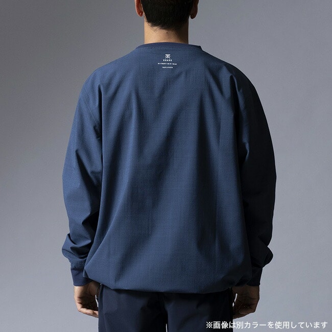BODYにはリネンライクでドライな質感を実現したオリジナルファブリック"NOMAD DRY"のストレッチ生地を採用。サイドと袖口にはPolartec® POWER DRY™を使用し袖から脇部分にパターンを入れることで高い通気性とスムーズな腕上げを実現しました。