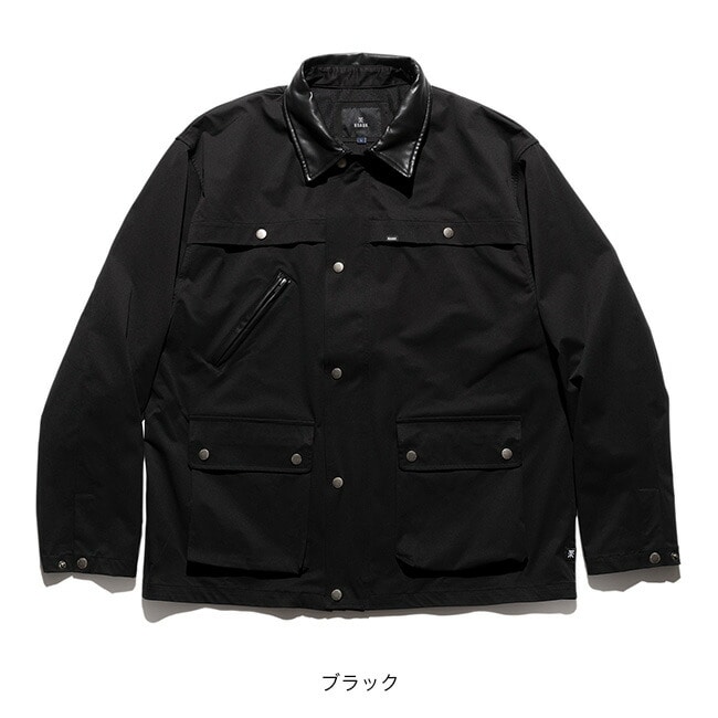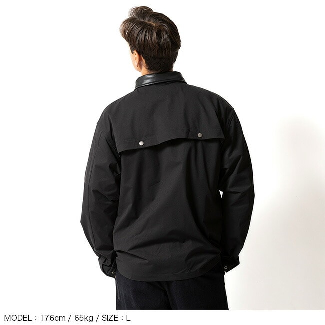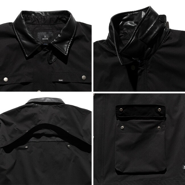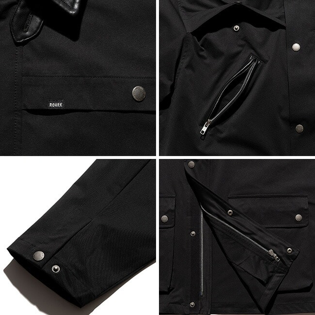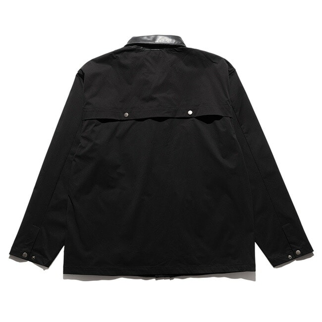 襟は合成レザーで切り替え、両肩と背中にはフラップ式のベンチレーションが設けられておりスナップボタンで開閉が可能。
