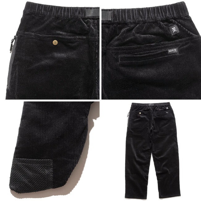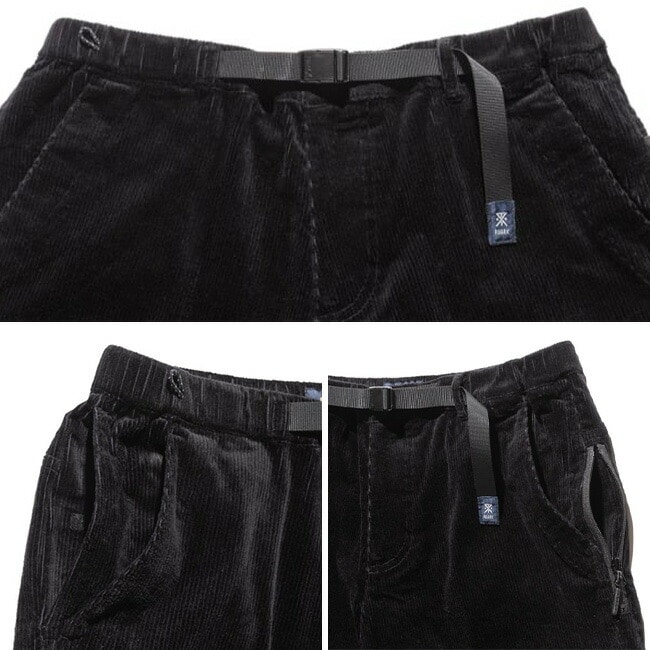 ウェビングベルトにはROARKのブランドアイコン、バックポケットにはブランドロゴがあしらわれています。