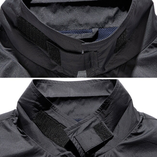 ソフトで軽量ながら、通気性と撥水性、そして4wayのストレッチ性を併せ持つ透湿撥水生地を採用。バーティカルジップに収納できるパッカブル仕様で携帯性に優れており、季節の変わり目や暑い日の急な雨にも快適性を維持しながら活躍します。