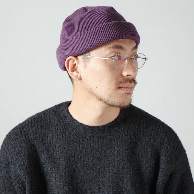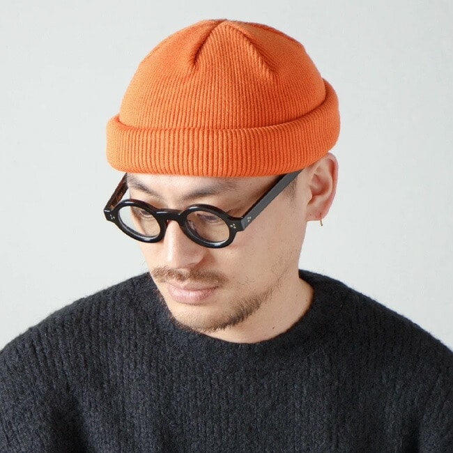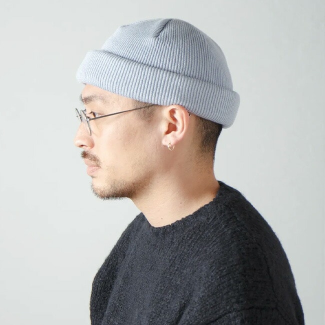 ミニマルなフォルムでありながら存在感があり、モードからストリートまで様々なスタイリングにフィットします。帽子の折り返し部分は、手まつり縫いで折りキワを止めておりますが、ご自身で糸を外して頂くと自在にアレンジできますのでお好みに合わせて調節して下さい。