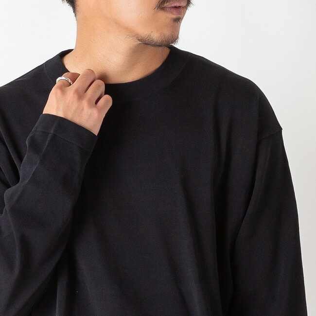 CENTRE TEE のロンT Ver。ガス焼きで毛羽を飛ばした糸を使用している為、光沢があり、シルキーな肌触りを実現。