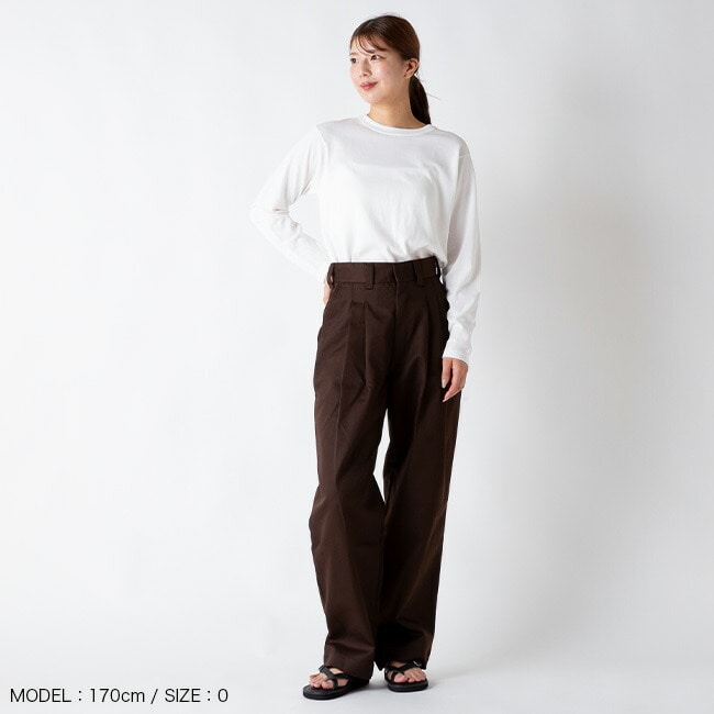 CENTRE TEE のロンT Ver。ガス焼きで毛羽を飛ばした糸を使用している為、光沢があり、シルキーな肌触りを実現。