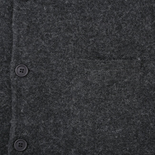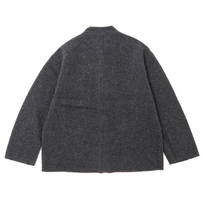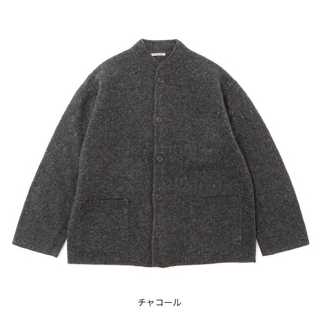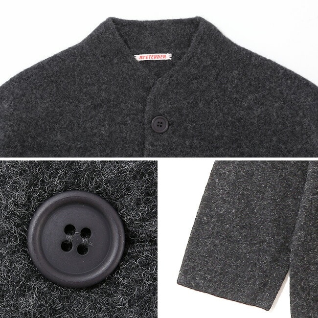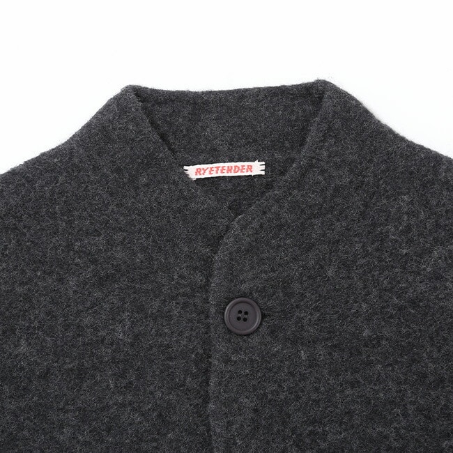 縮絨のシボ感も特徴的な表情で、寝ている立ち襟はとってもチャーミングです。