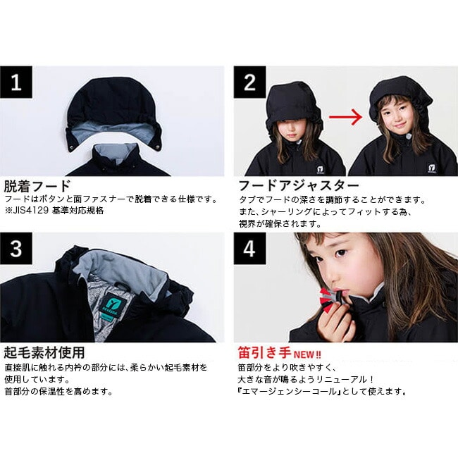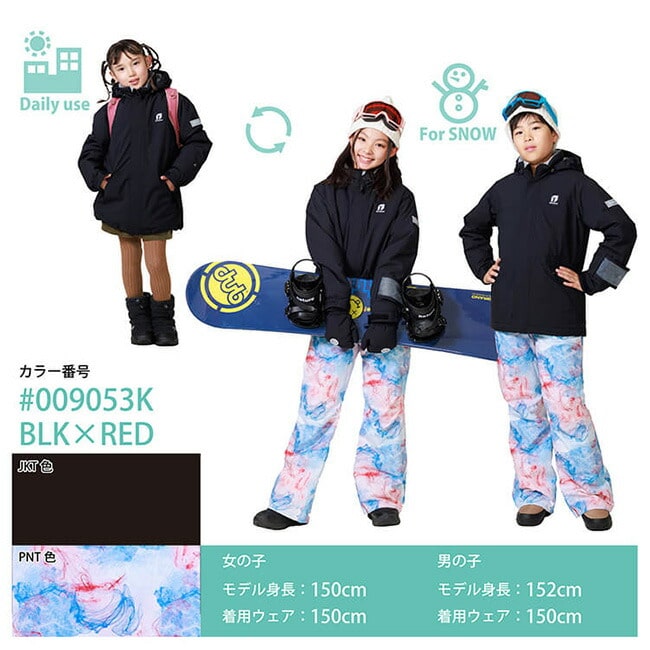 普段着&スノーウエアで2wayタイプな所がおススメポイントです。RESEEDAではお子様の安全に考慮し、JIS規格に対応して作られています。