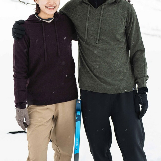 本格的なアウトドアシーンから日常の保温着まで幅広く活躍するフーディ。