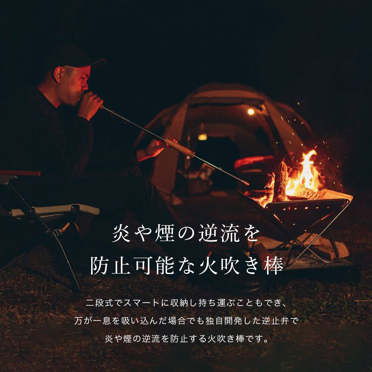 「キャンパーが火を起こす際に、誤って火吹き棒で息を吸って火傷をした」というニュースから、より安全に火をコントロールできる火吹き棒を開発しました。