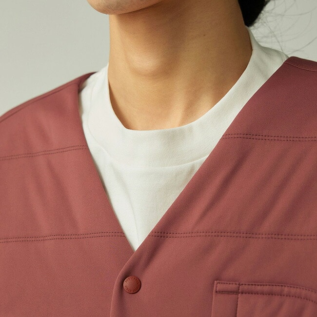クルーネックTシャツや襟付きシャツなどに重ね、さまざまなスタイリングが楽しめます。