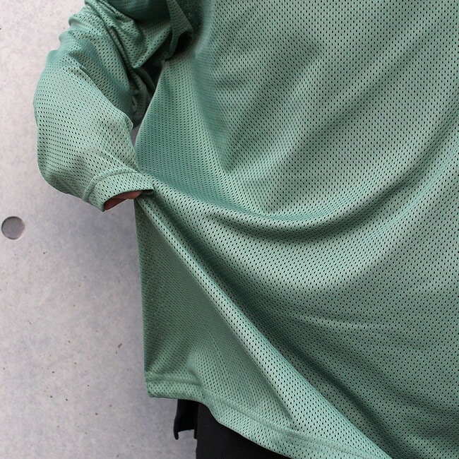 防虫性と通気性を備えたフルメッシュの長袖Tシャツ