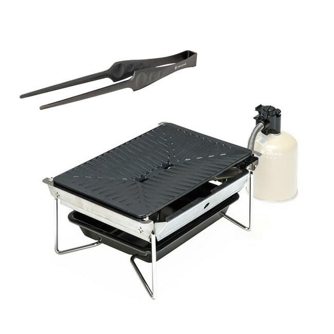 分厚いステーキも美味しく焼ける“鋳鉄”グリドルの本格焼肉バーナー「グリルバーナー 雪峰苑」と、テーブルに直接おいても、先端が触れない衛生的な設計の焼肉専用トング「ピッツ」がセットになりました。