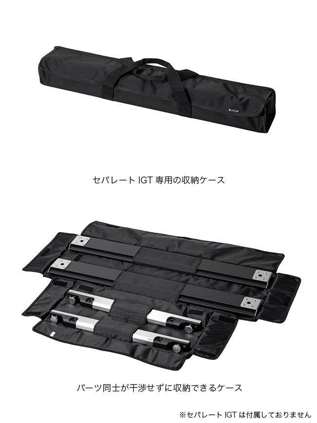 スノーピークレイアウトシステムを象徴するアイテムの一つ、「IGT アイアングリルテーブル フレーム」の進化モデル「セパレートIGT フレーム」のパーツ同士が干渉せずに収納できるケースです。