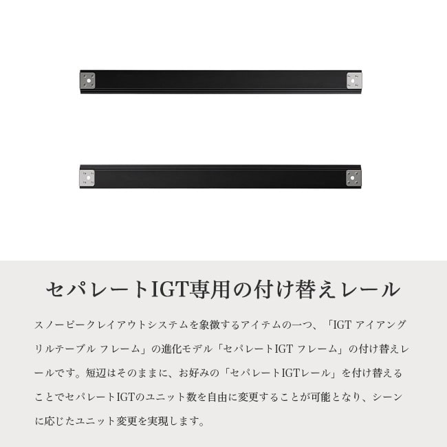 短辺はそのままに、お好みの「セパレートIGTレール」を付け替えることでセパレートIGTのユニット数を自由に変更することが可能となり、シーンに応じたユニット変更を実現します。