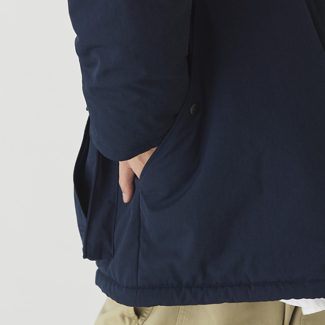 袖口は内側リブ仕様、裾は両脇のサイズ調整仕様により、内側への外気の侵入を防ぎます。