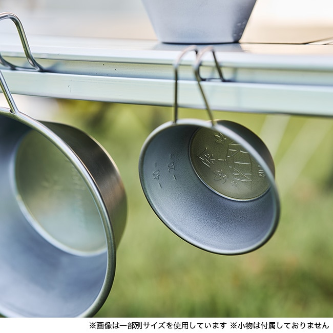 満水容量は60mlで、お猪口の代わりに日本酒を入れ熱燗にしたり、焼酎を入れたり、計量スプーンとして使用したり、おつまみを入れたり、いろんな使い方ができるかわいいサイズのシェラカップです。チタン製で軽量かつ強度もある集めたくなる人気アイテムです。