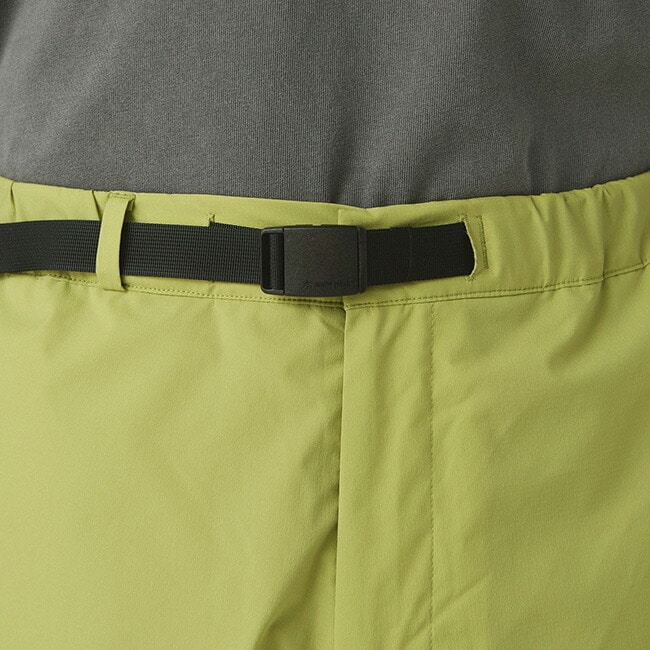 ウエストはウェイビングテープにオリジナルアジャスターを採用した調整ベルト付きで、裾はサイドファスナー付きです。
