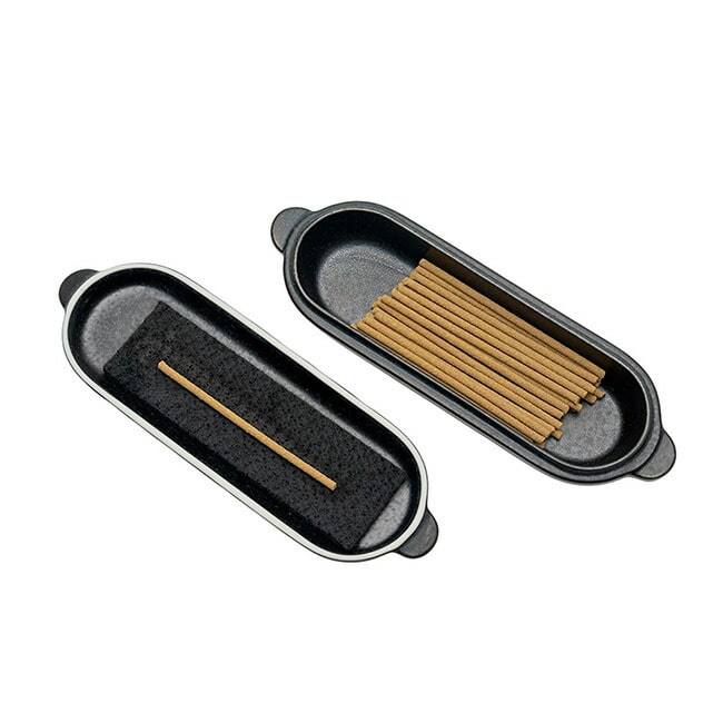 ■素材:インセンスケース/陶器(圧力鋳込み成形)、黒色釉薬、不燃マット/耐炎化ポリアクリロニトリル繊維、結束用ベルト/ポリプロピレン