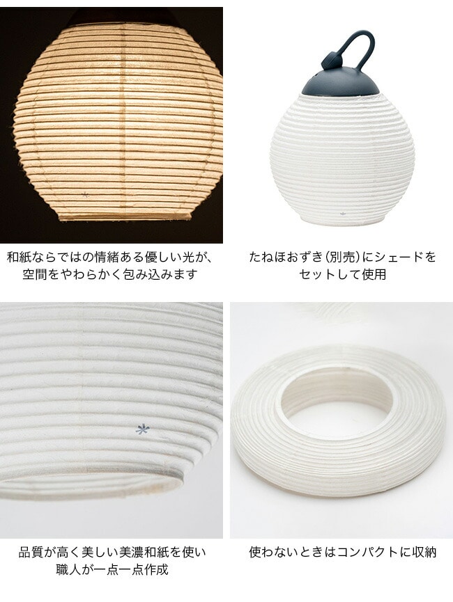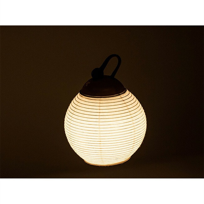 線香花火の火の玉のような丸く可愛らしい形のシェード。和紙越しの光が、空間全体を落ち着いた優しい光で包み込み、キャンプサイトに趣のある光の情緒を添えます。