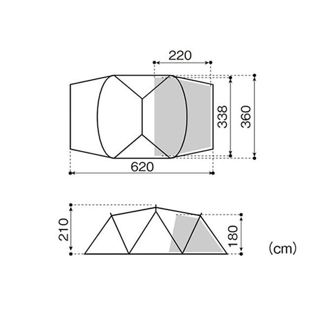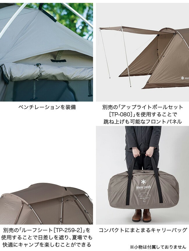 ■セット内容:インナールーム、フライシート、リッジポール(×1)、Aフレーム(×2)、Cフレーム(×2)、ジェラルミンペグ(21cm×18)、自在付ロープ(3.5m×4、2.5m×8)、キャリーバッグ、フレームケース、ペグケース