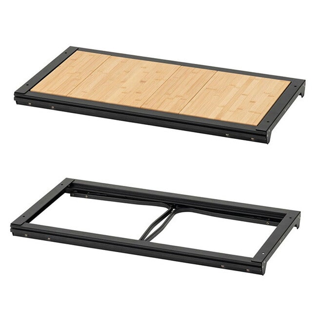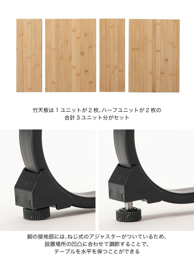 ■セット内容:本体、天板(1ユニット×2、ハーフユニット×2)竹集成材、アルミニウム合金(粉体塗装)、スチール(クロームメッキ)、ポリプロピレン