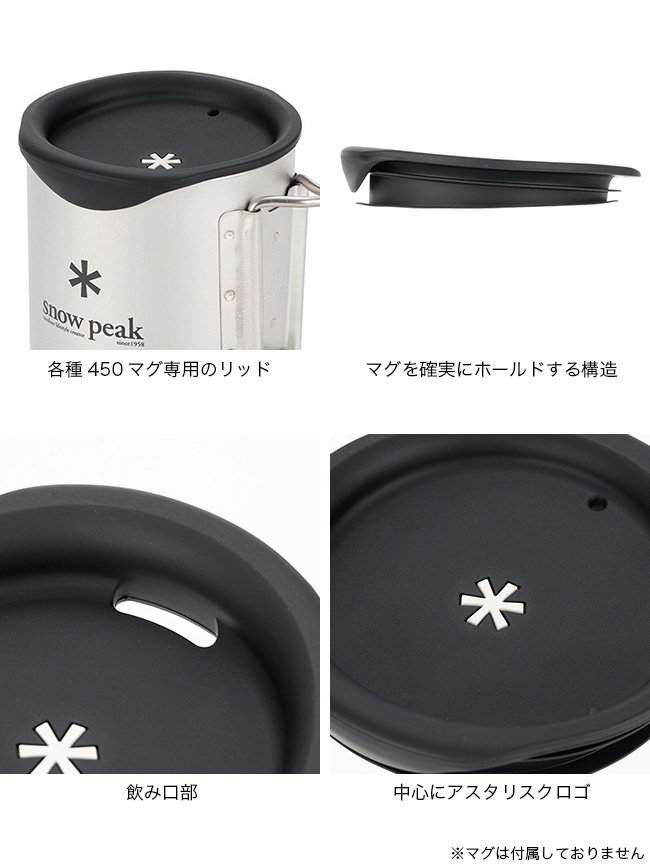 リニューアルにより対応するマグが増えました。ステンレス真空マグ450、チタンダブルマグ450、雪峰H450用、チタンシングルマグ450用のフタ。