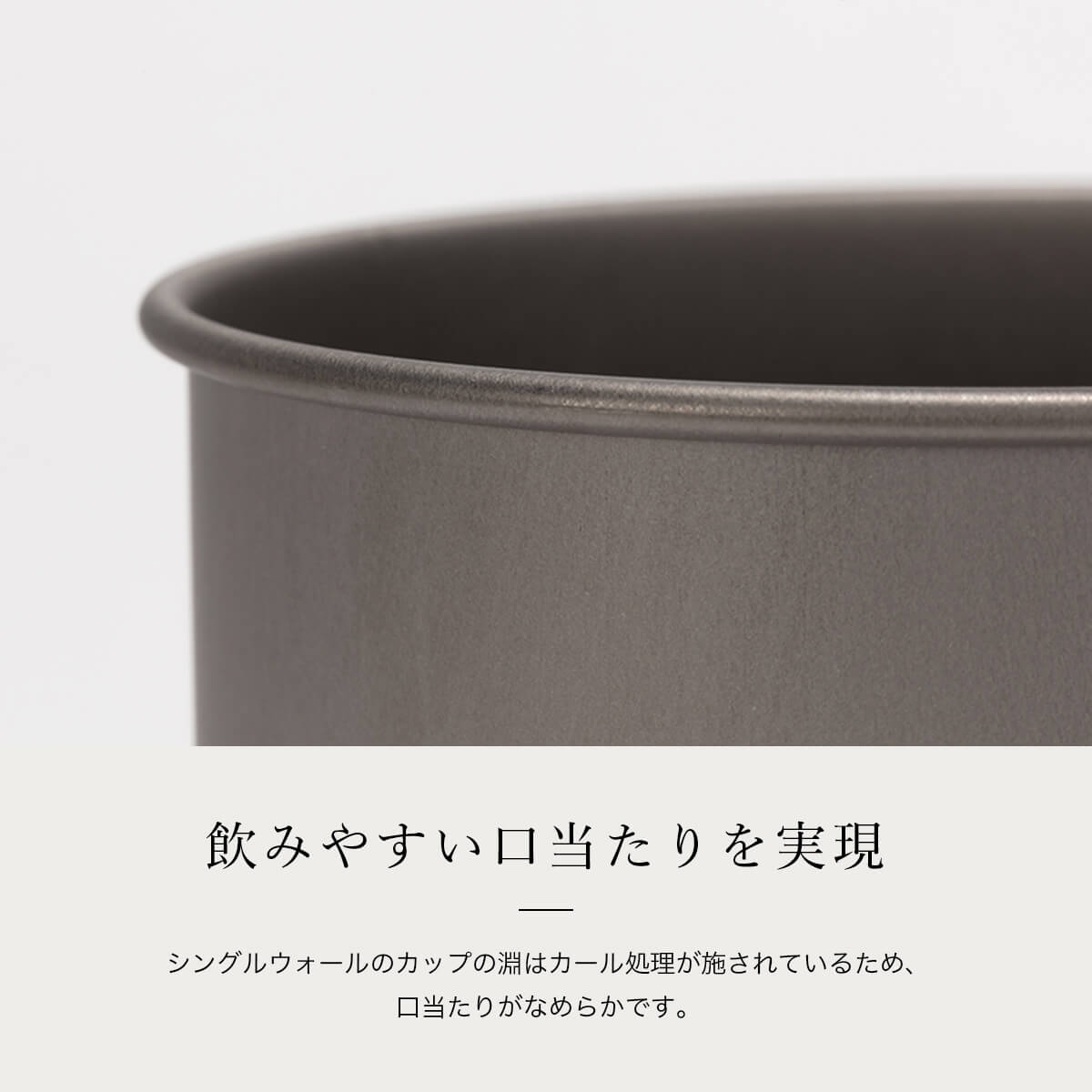 シングルウォールの口元はカール処理が施されていますので、優しい口当たりです。