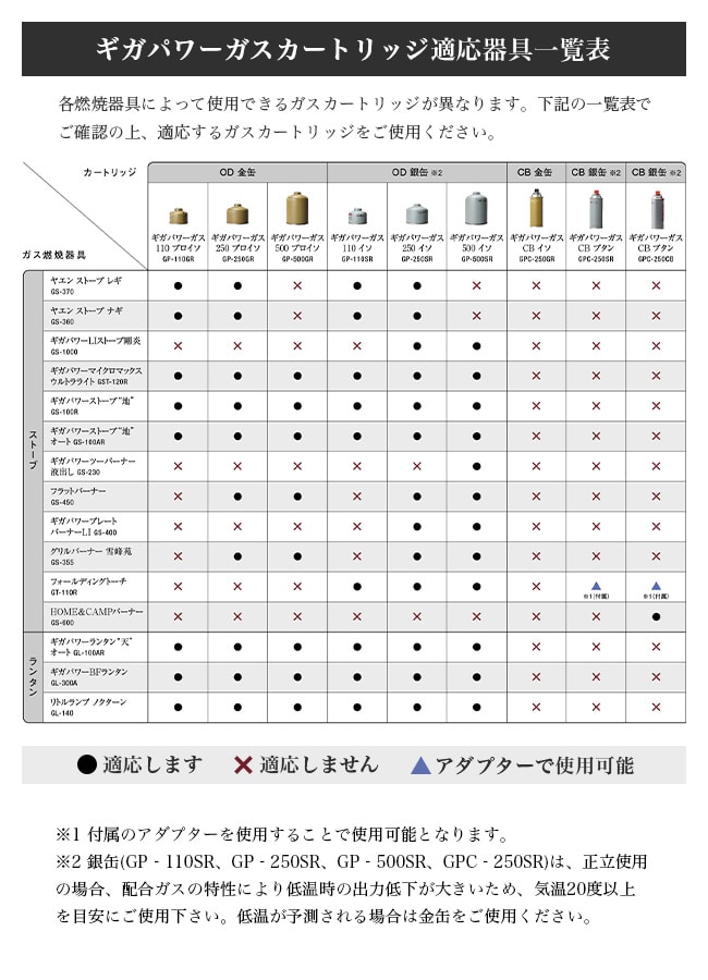 ※各器具に合わせた専用缶を必ずご使用ください。