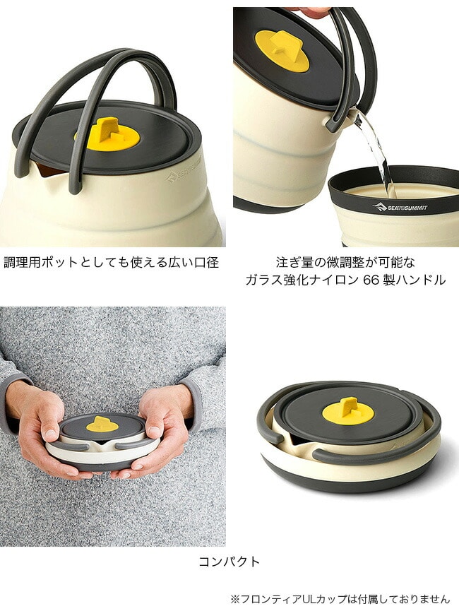 フロンティアULケトルはフィールドでの休憩中にお湯を沸かすのに最適な、薄く折りたためるコンパクトなケトルです。