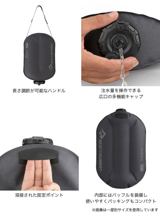 形状はサイドウォールをもつ立体形状なので、旅の最後には水を出し切って内部を乾かしやすくできます。