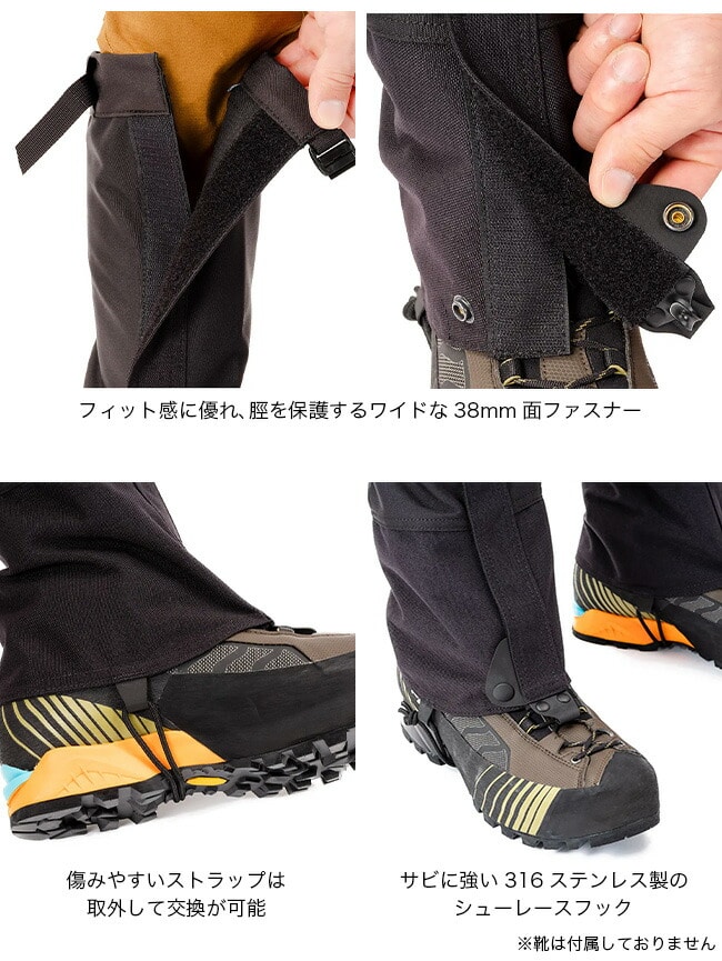 38mm幅のワイドな面ファスナーはフィット感に優れ、脛を保護します。