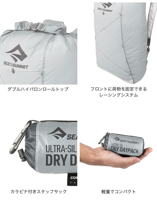 ユニークなダブルハイパロンロールトップは水の浸入を防ぎ、正面のレーシングシステムで荷物のばたつきを抑えます。