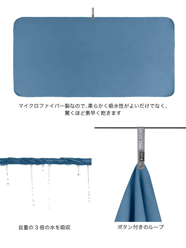 シャモア地のような心地よい肌触り。テックタオルよりもコンパクトになり、さらに速乾性にも優れた旅の相棒です。