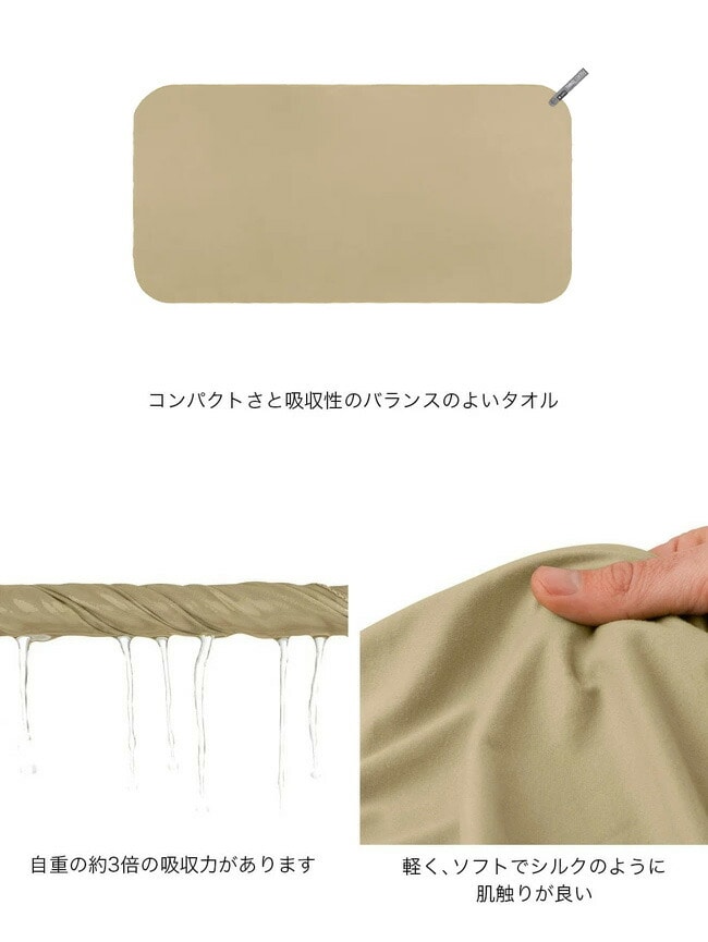 シリーズ中でエアライトタオルに次ぐ軽量コンパクトさで、自重の約3倍の吸収力があります。軽くソフトでシルクのように肌触りが良く、速乾性にも優れ、絞った後にすぐに使用できます。
