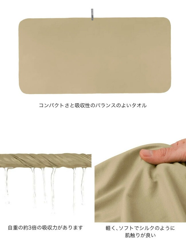 シリーズ中でエアライトタオルに次ぐ軽量コンパクトさで、自重の約3倍の吸収力があります。軽くソフトでシルクのように肌触りが良く、速乾性にも優れ、絞った後にすぐに使用できます。
